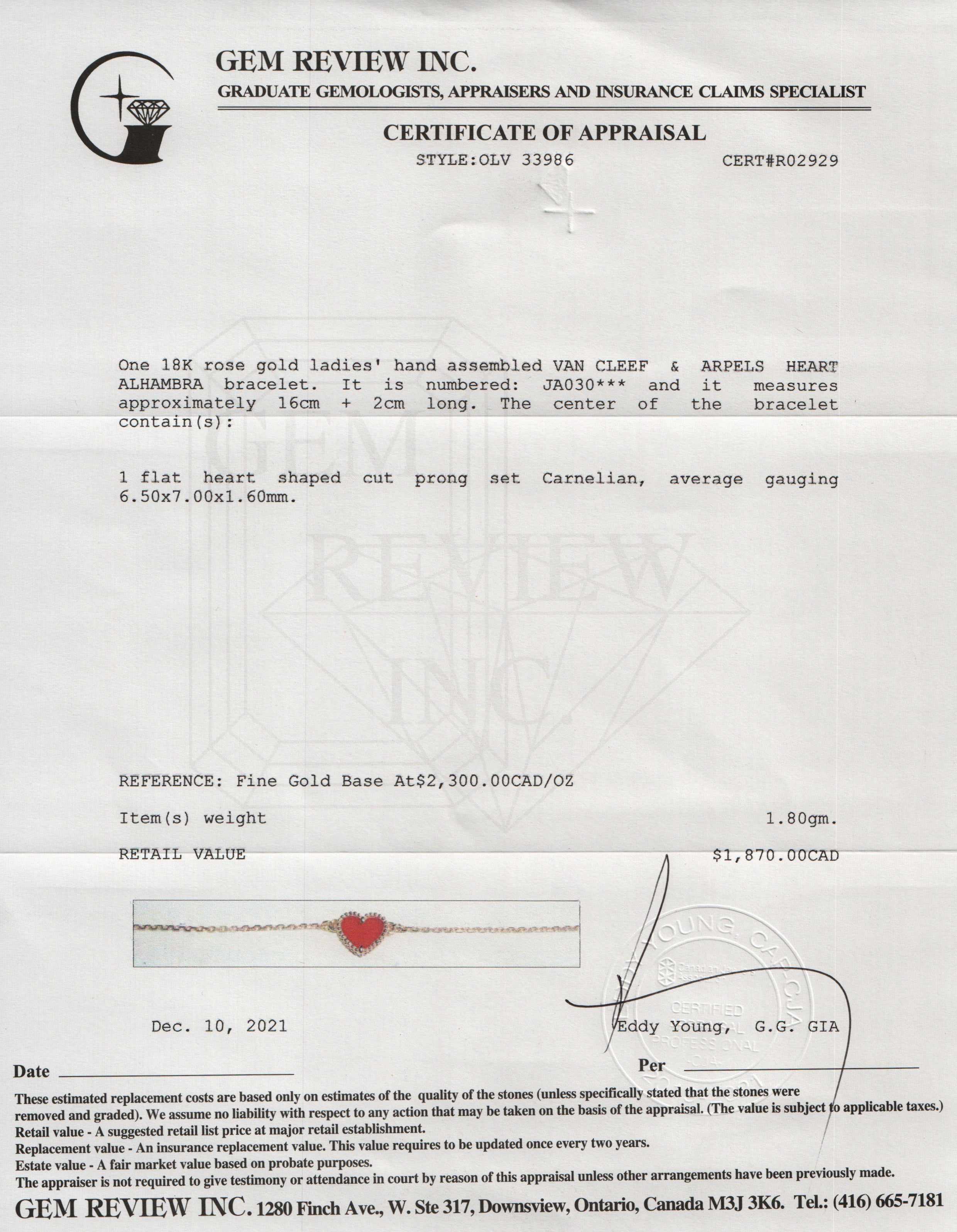 Included Items: Original Van Cleef Box and Gem Review Appraisal