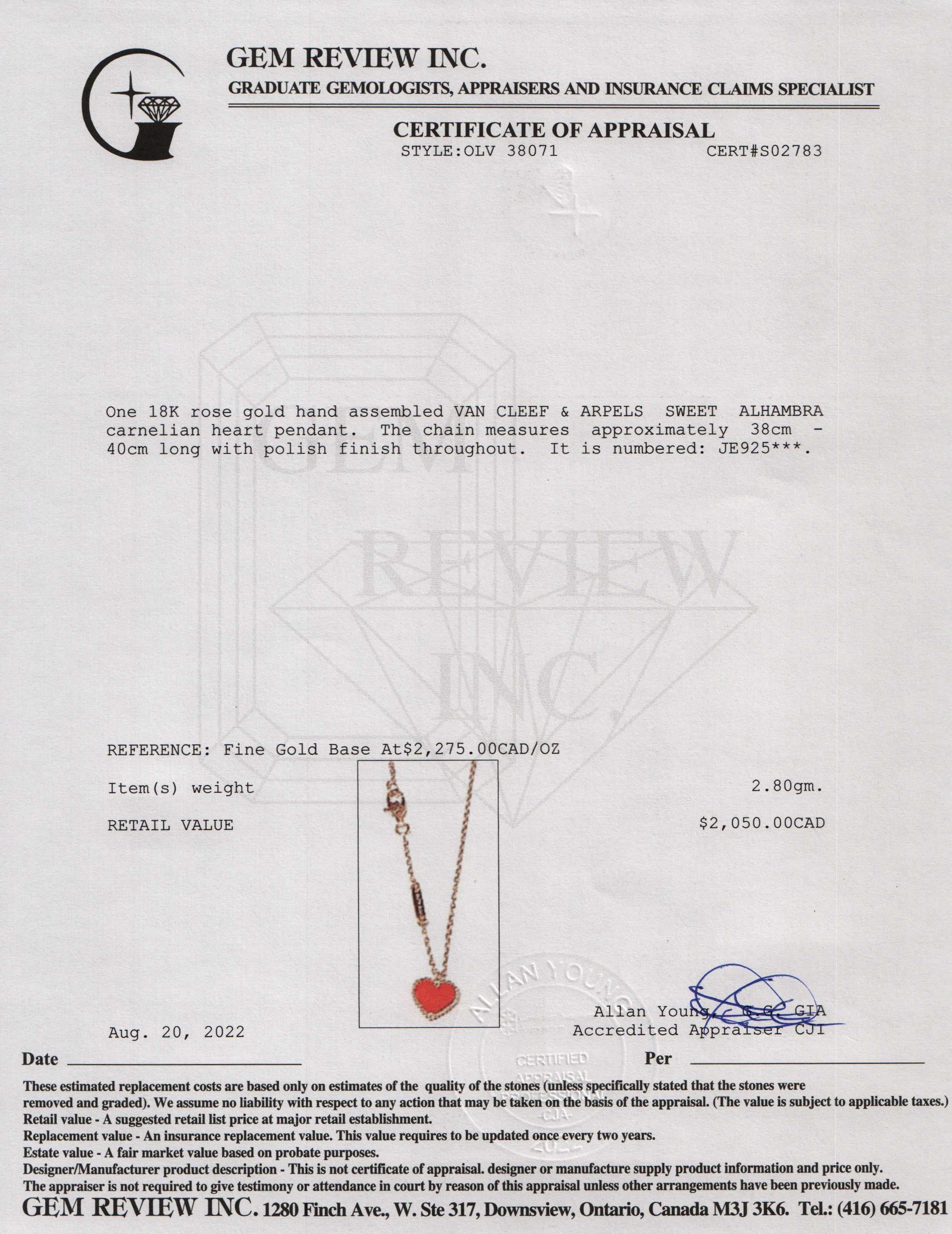 Van Cleef & Arpels Sweet Alhambra Carnelian Heart Pendant Necklace
