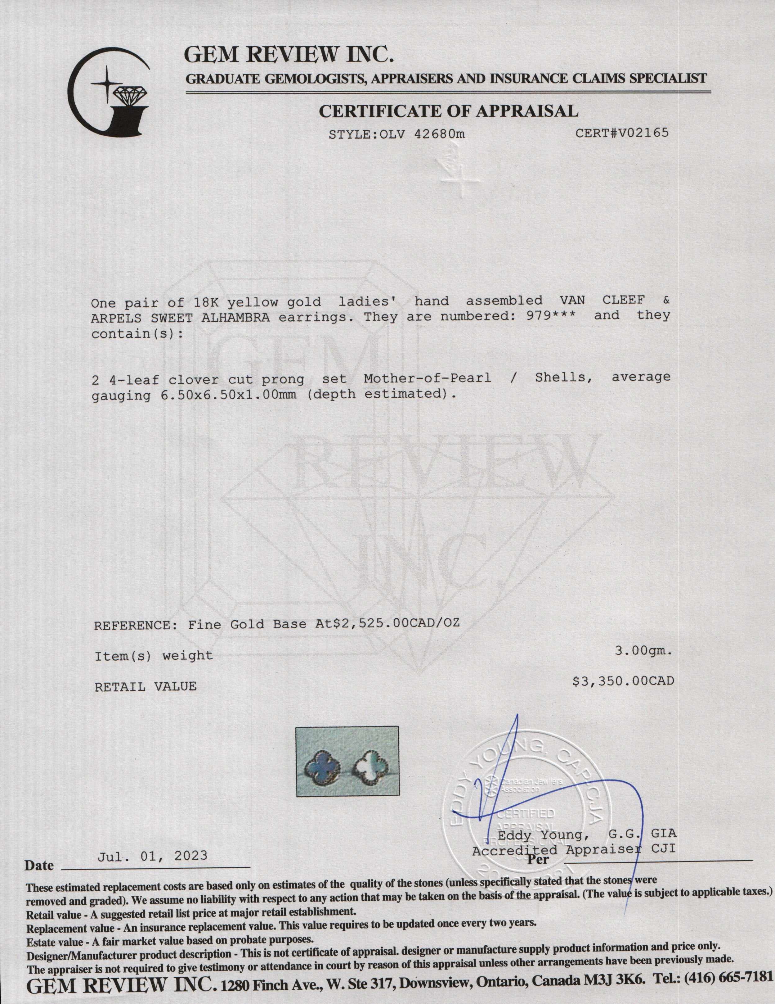 Included Items: Original Van Cleef & Arpels Box, Certificate & Gem Review Appraisal