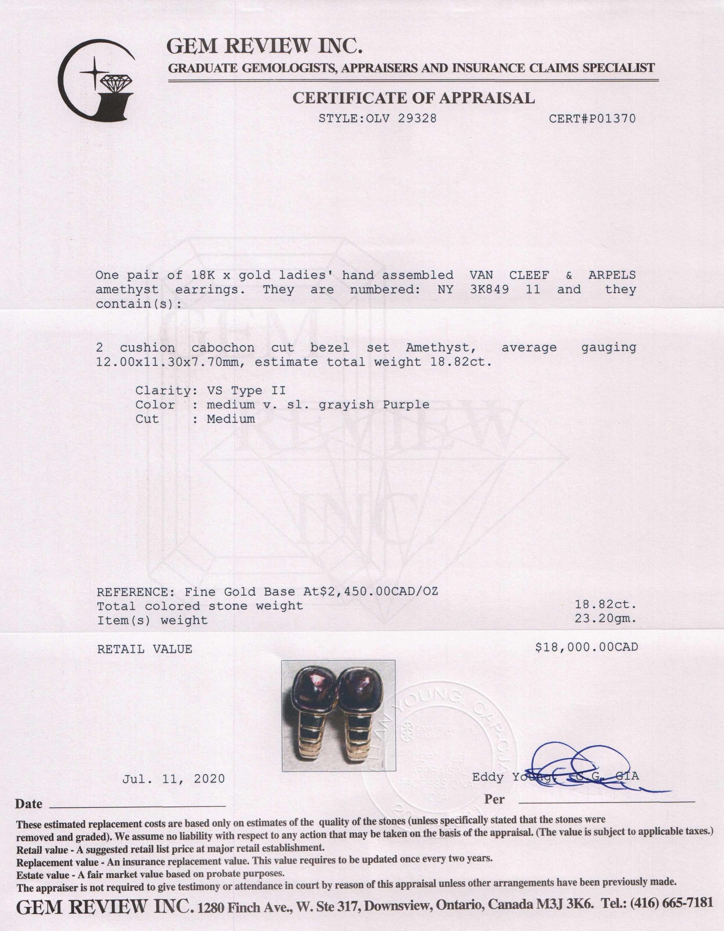 Van Cleef & Arpels Vintage 18k Gold Cabochon Amethyst Clip On Earrings