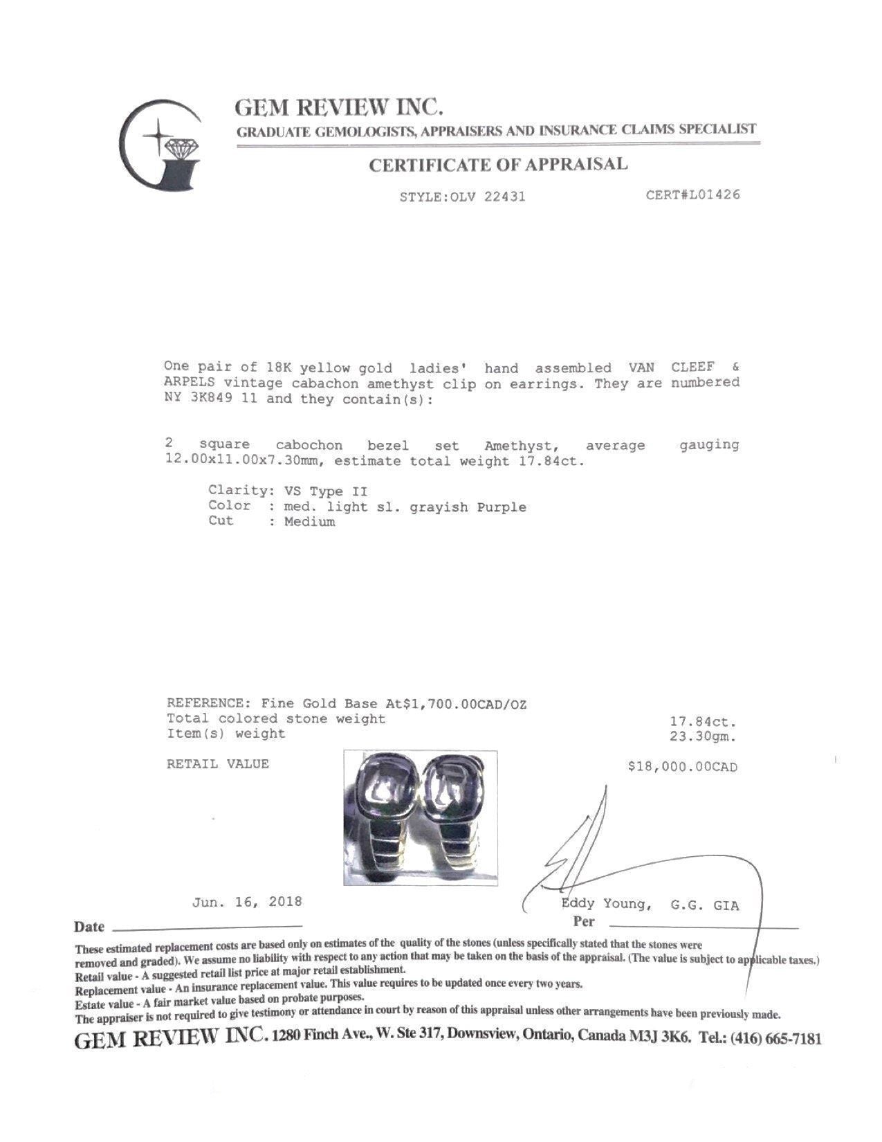 Van Cleef & Arpels Vintage Cabochon Amethyst Clip On Earrings