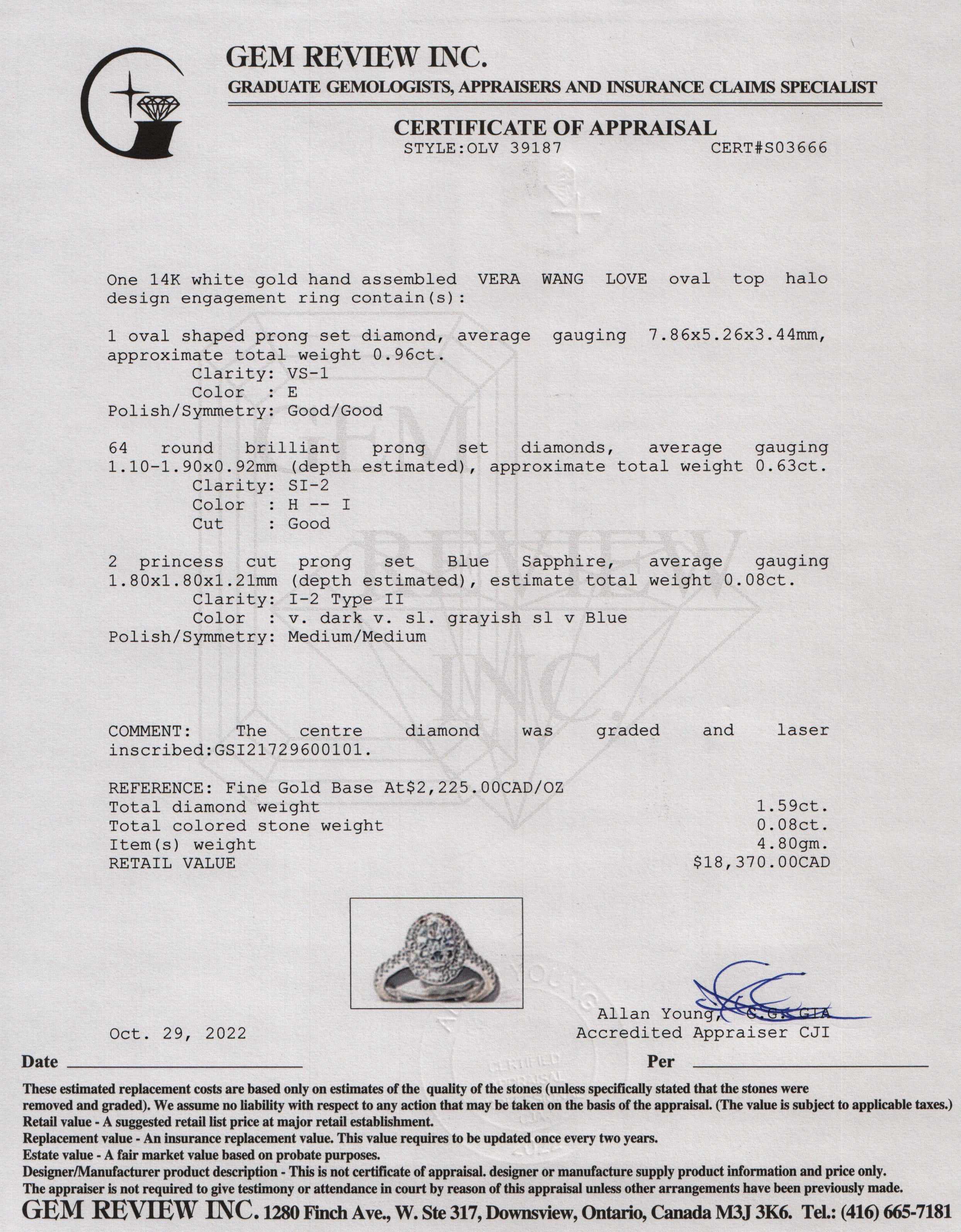 Included Items: Original Vera Wang Box, Certificate, GSI Certificate & Gem Review Appraisal