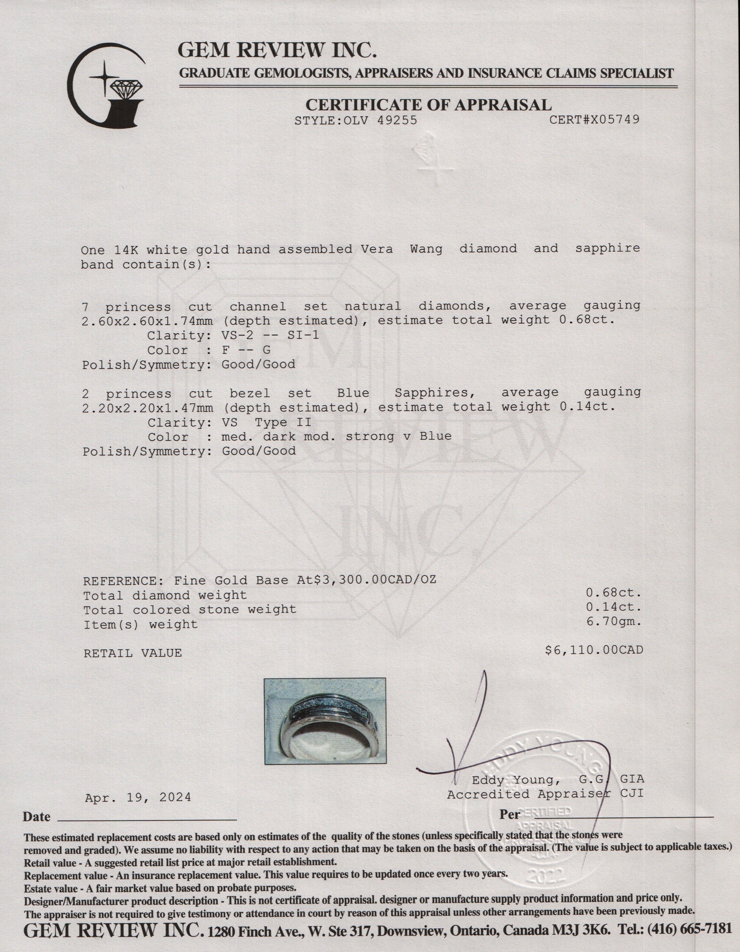14k White Gold Diamond & Sapphire Band Ring, Size 8.75