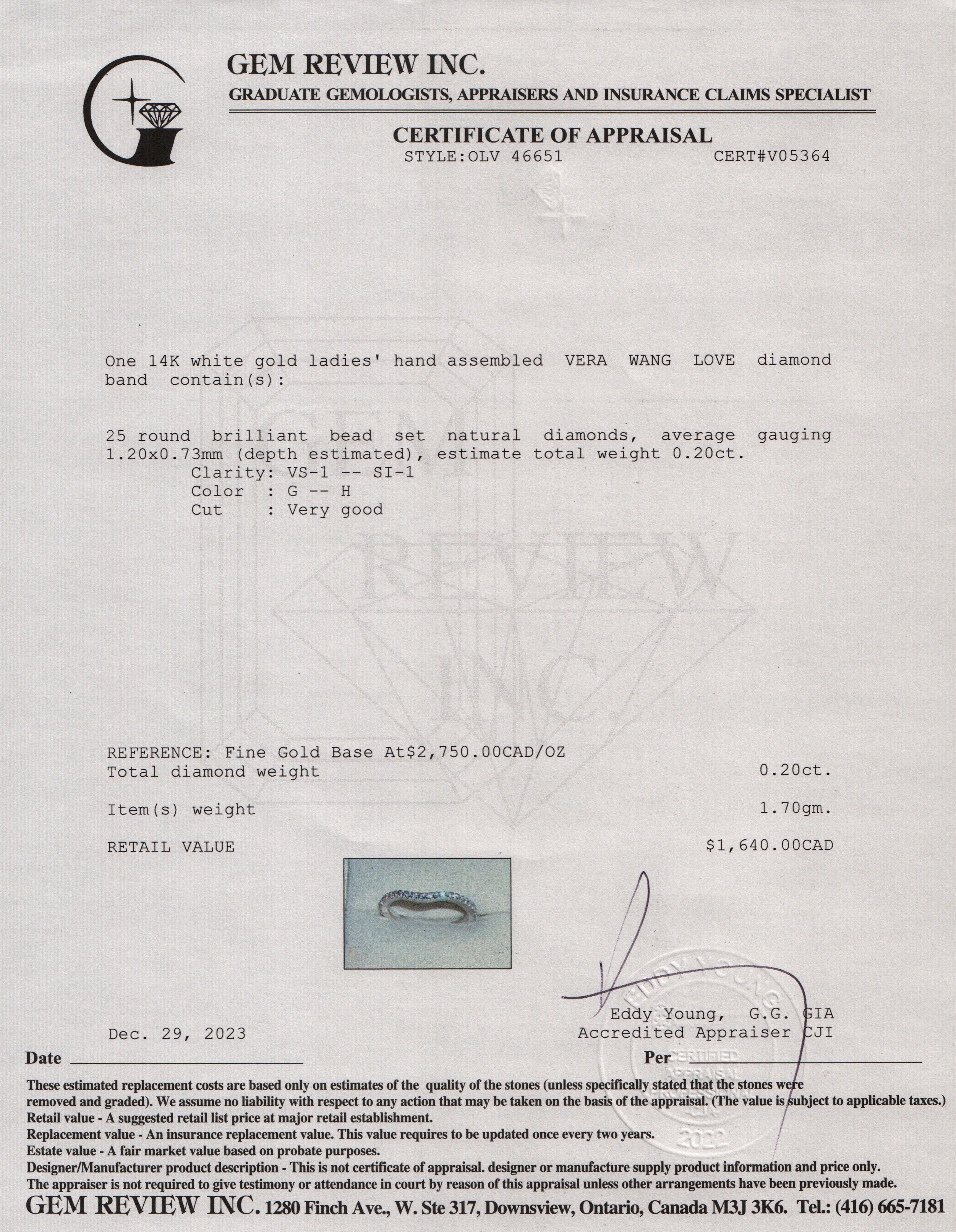 14k White Gold Love Diamond Band Ring, Size 4.5