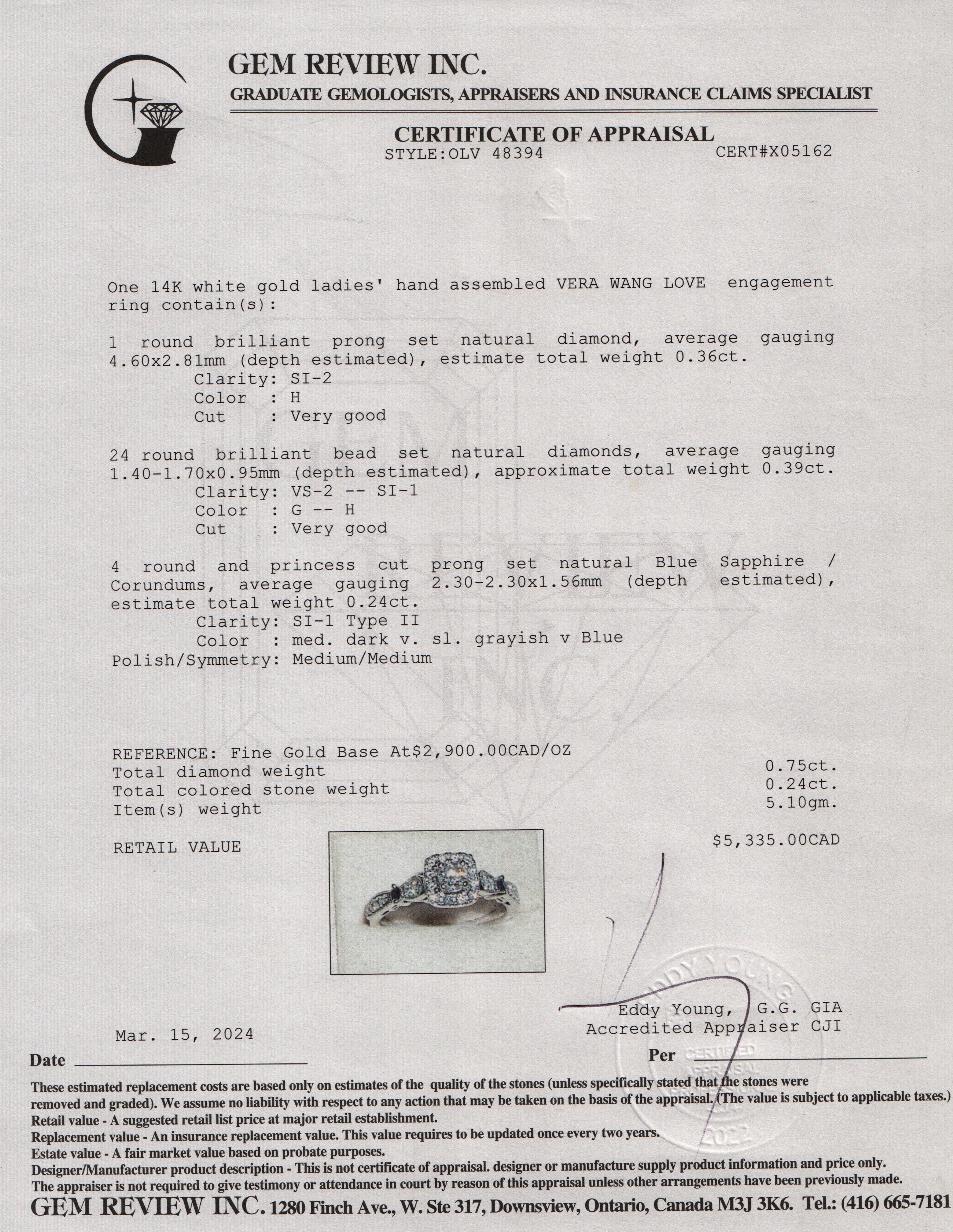 14k White Gold Love Diamond Engagement Ring, Size 10.5