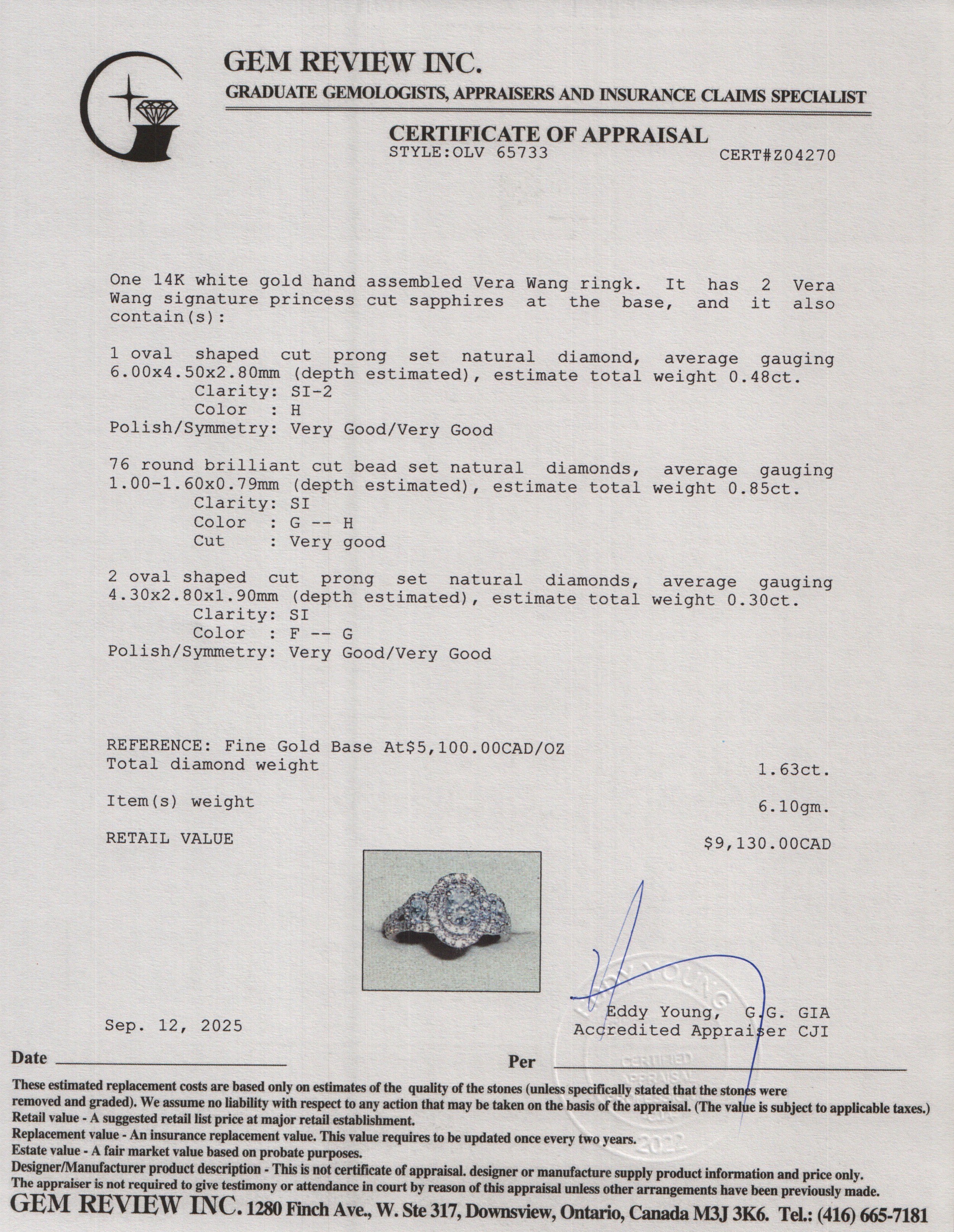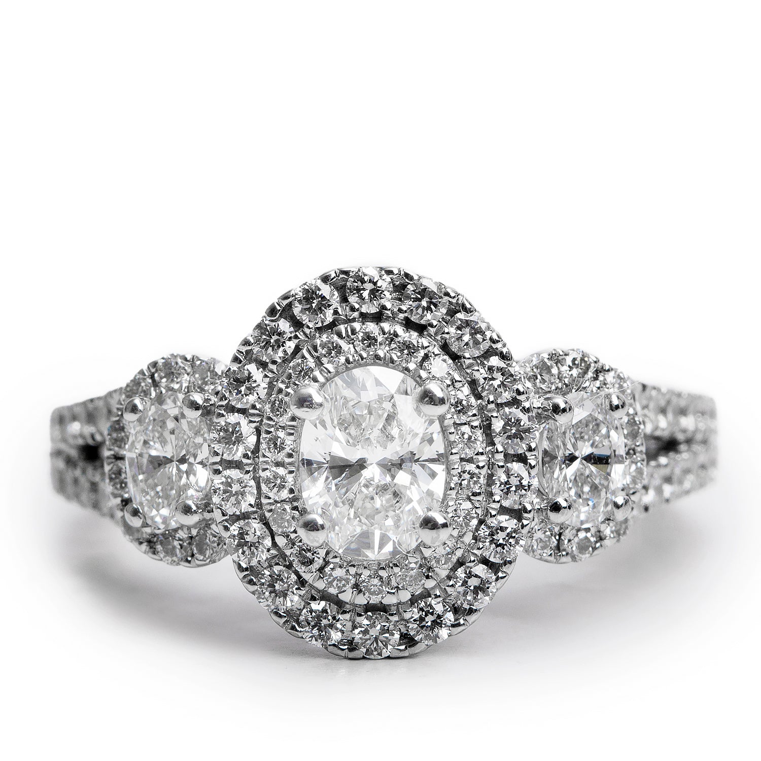 14k White Gold Love Oval Cut Diamond Engagement Ring, Size 6.5