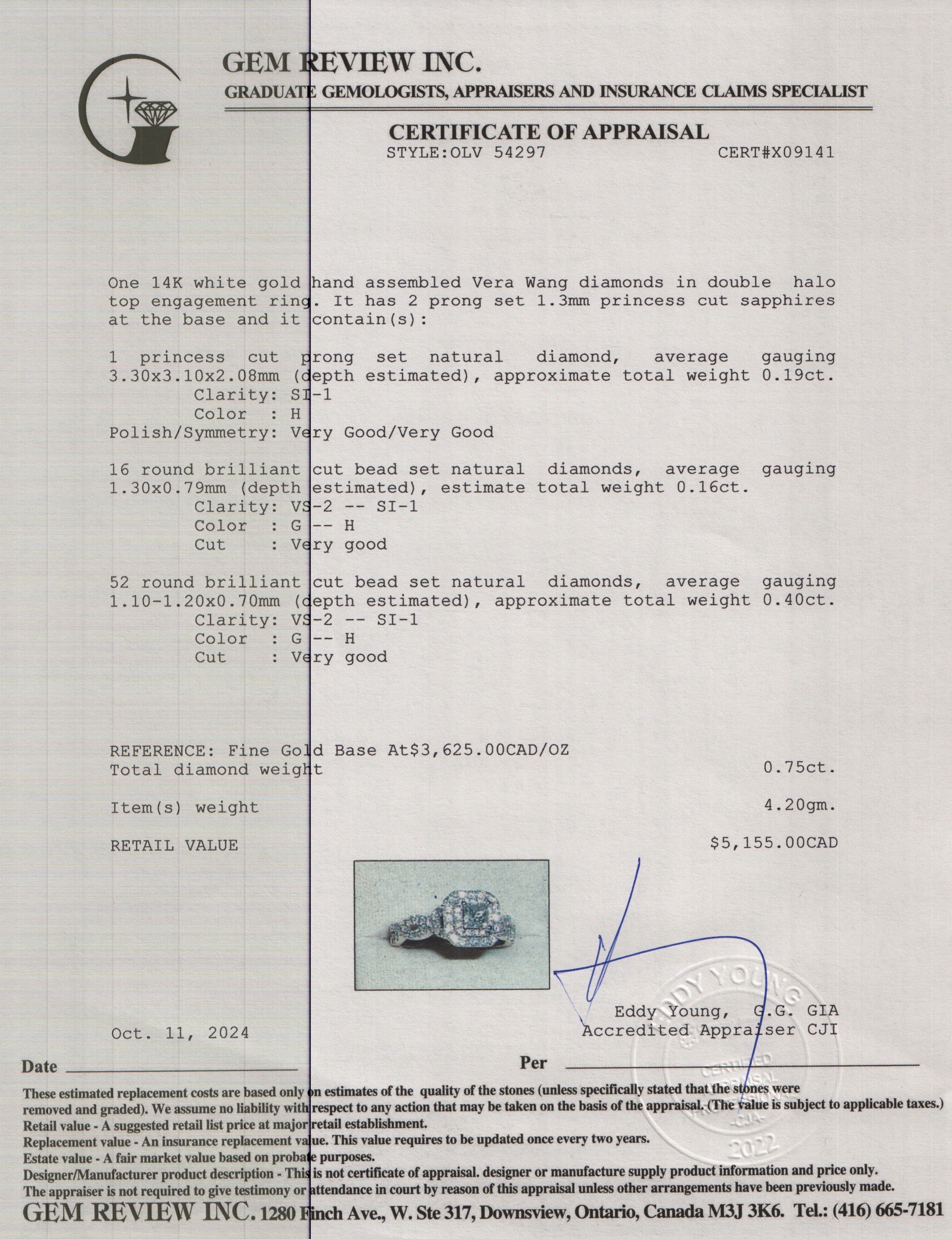 14k White Gold Love Princess Cut Diamond Engagement Ring, Size 6.5
