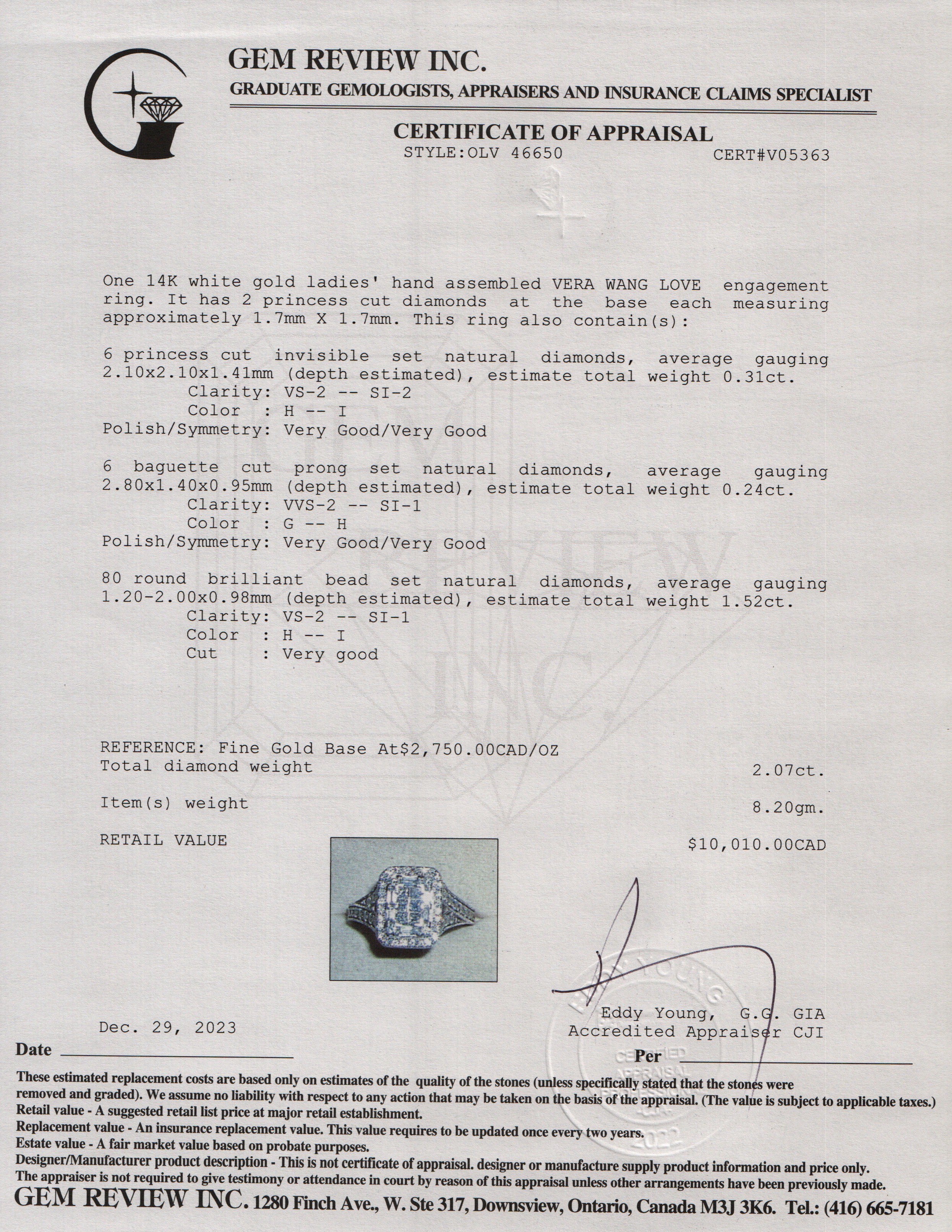 14k White Gold Love Princess Cut Diamond Engagement Ring, Size 8