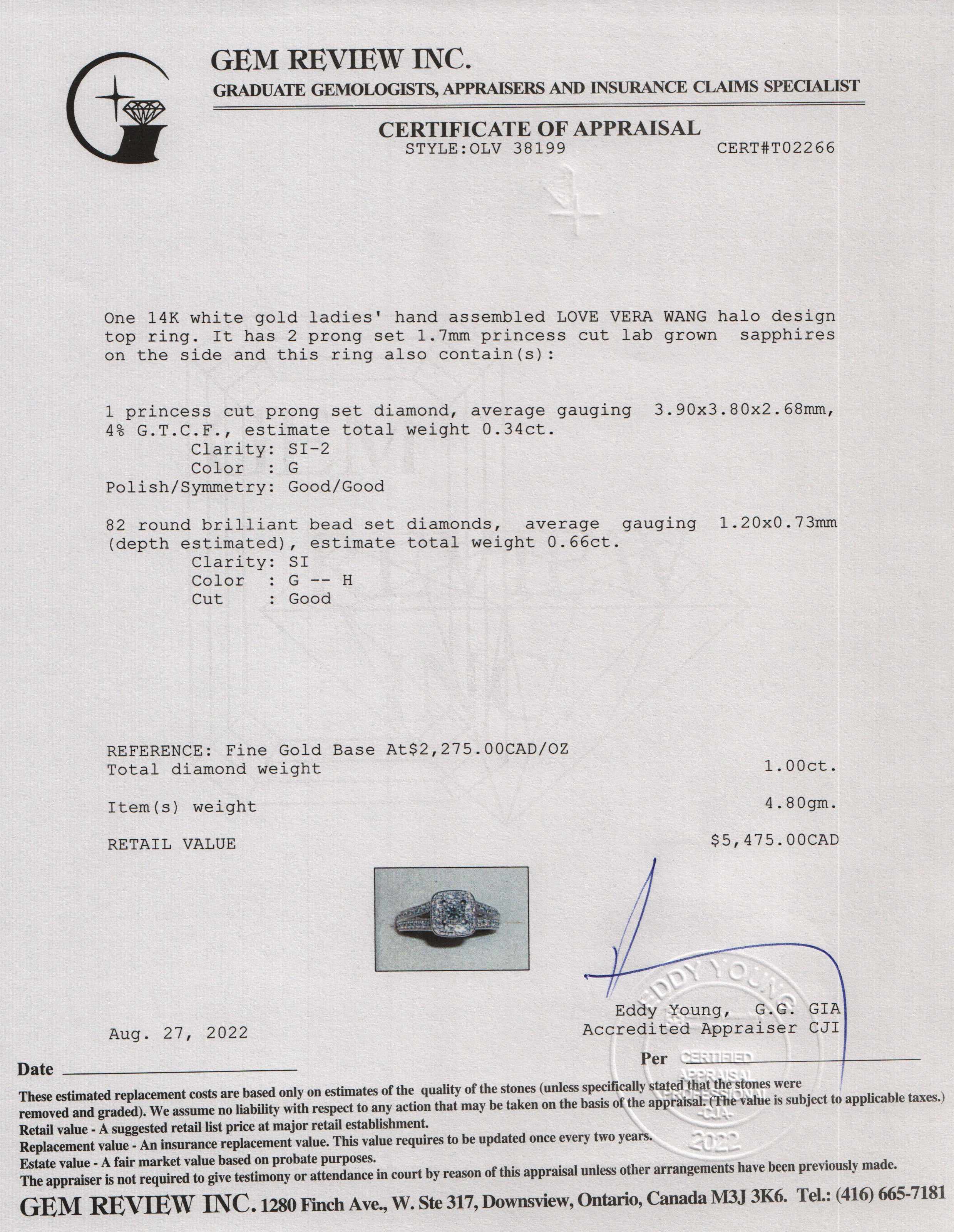 - Signature/Hallmarks: Vera Wang Love 14KT