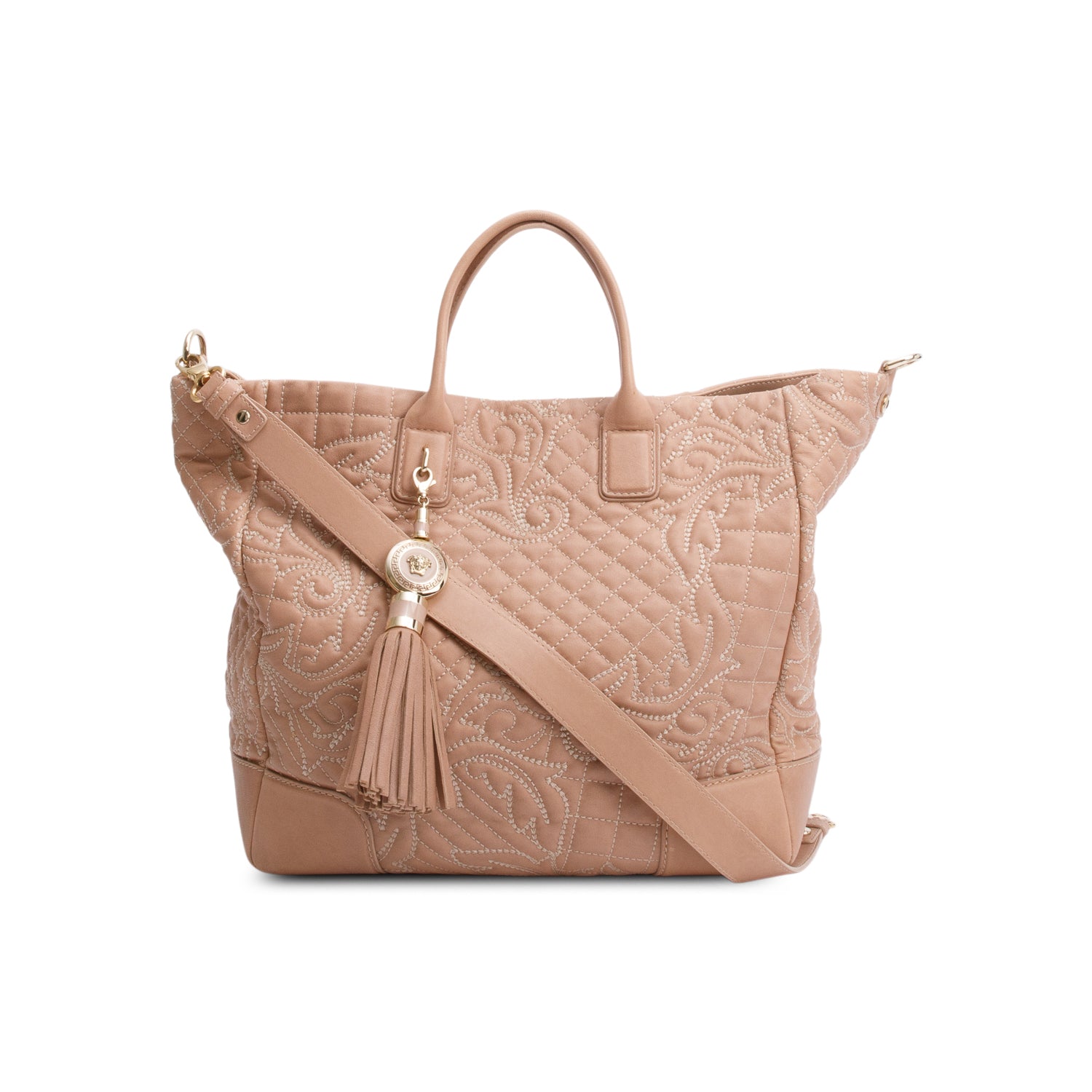 Beige Quilted Calfskin Leather Tassel Elettra Vanitas Tote Bag