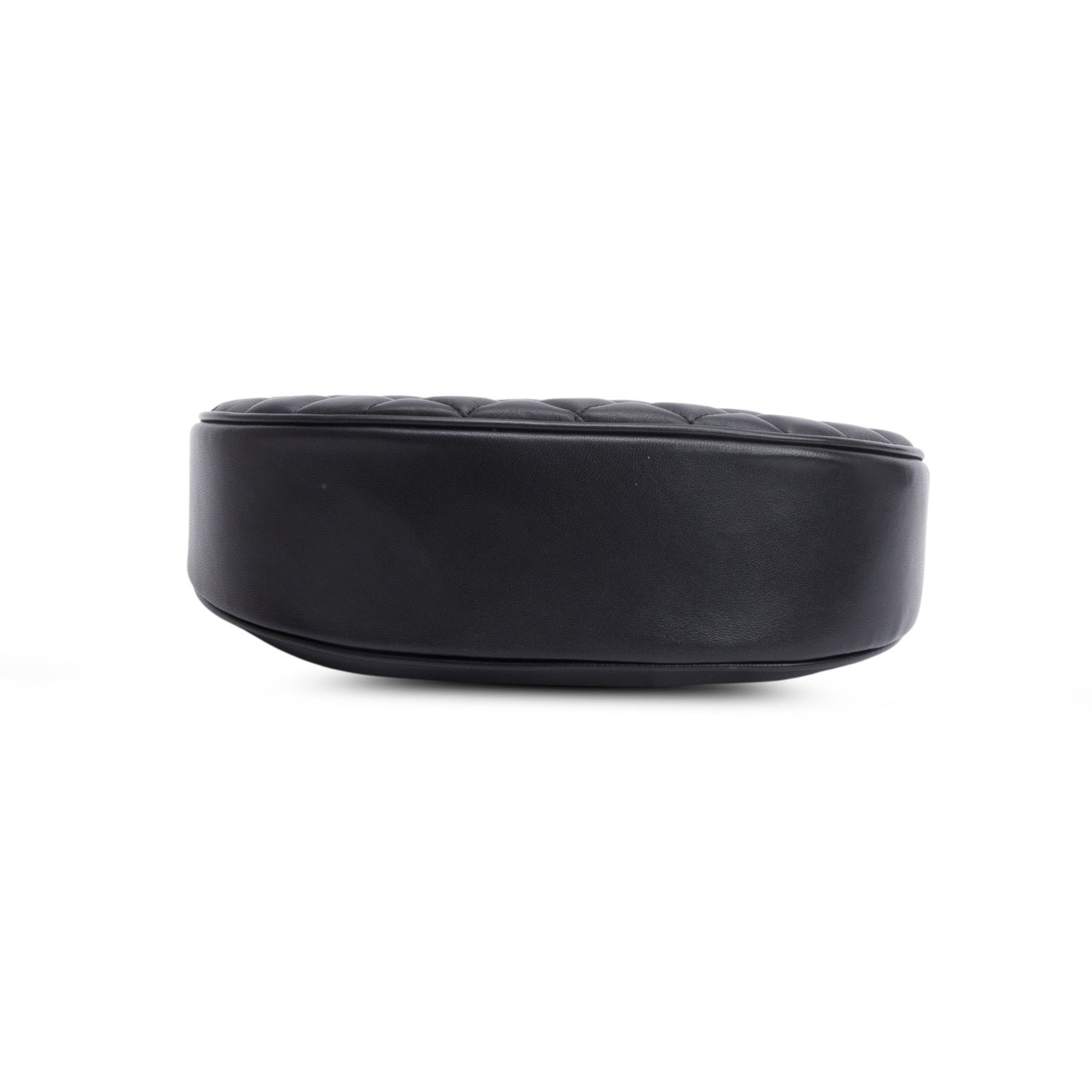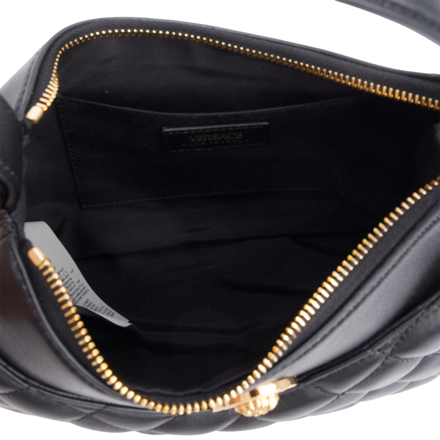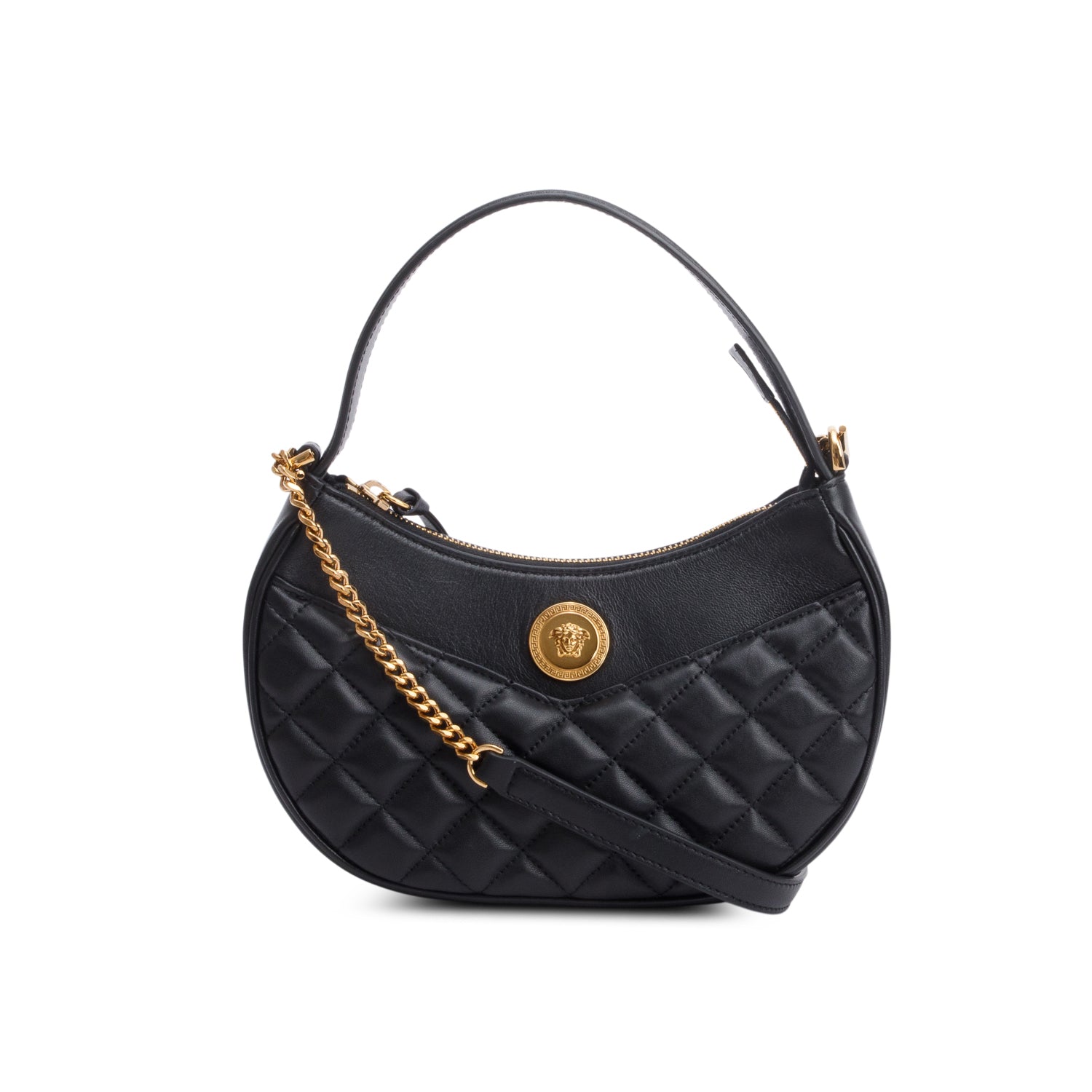 Black Quilted Leather Medusa Half Moon Shoulder Bag w/ Strap