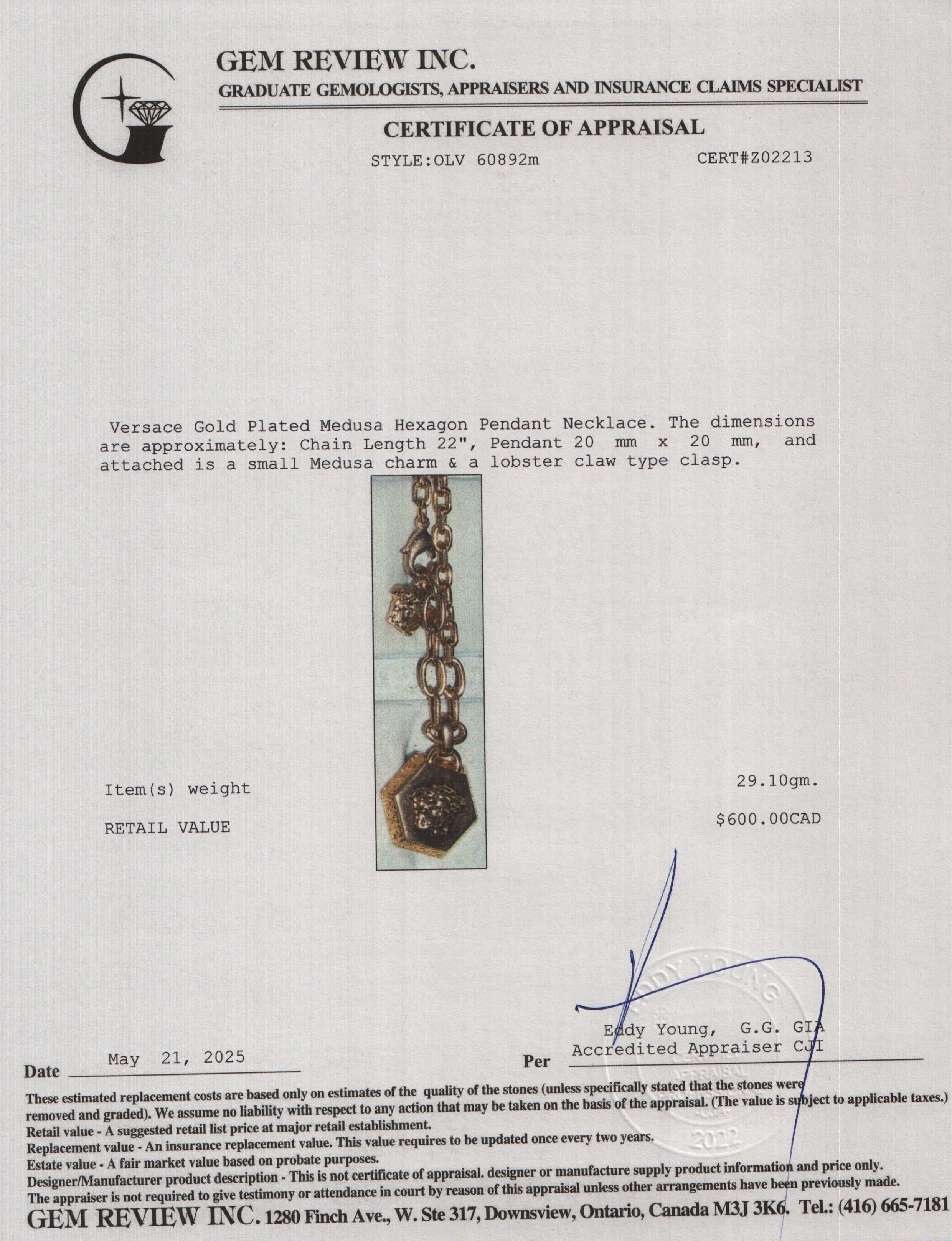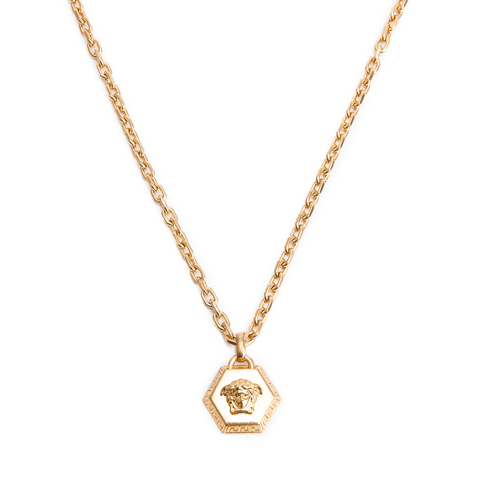 Gold Plated Medusa Hexagon Pendant Necklace w/ Box, Receipt & Authenticity Card