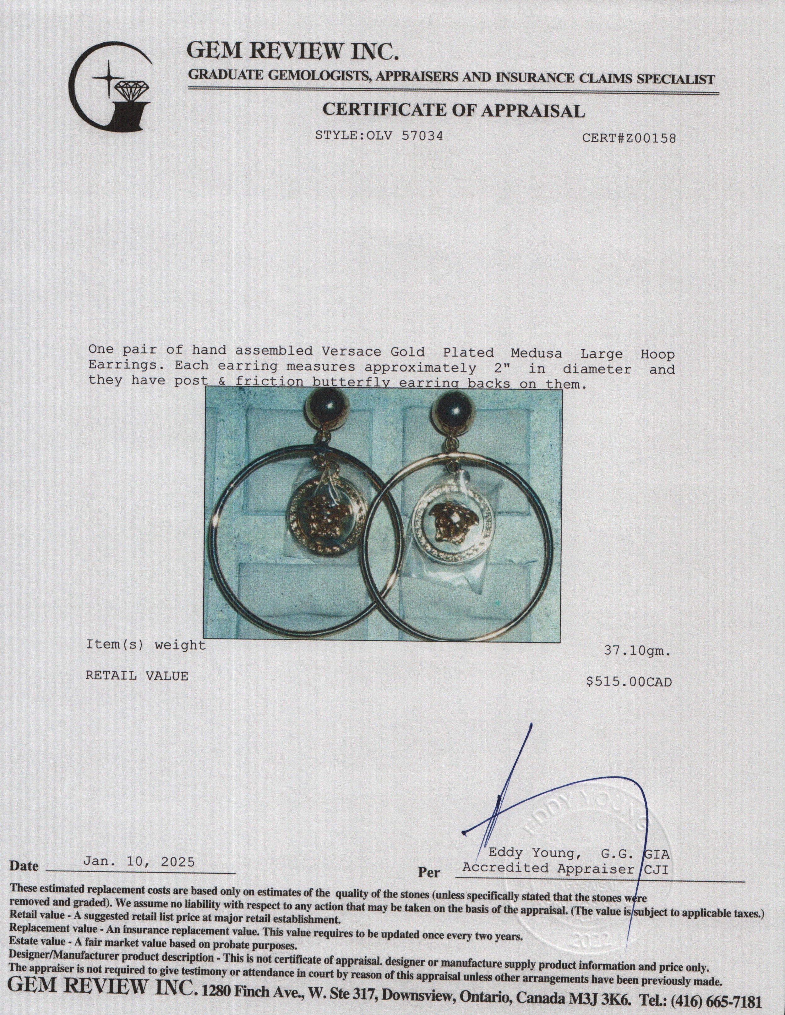 Gold Plated Medusa Large Hoop Earrings w/ Box