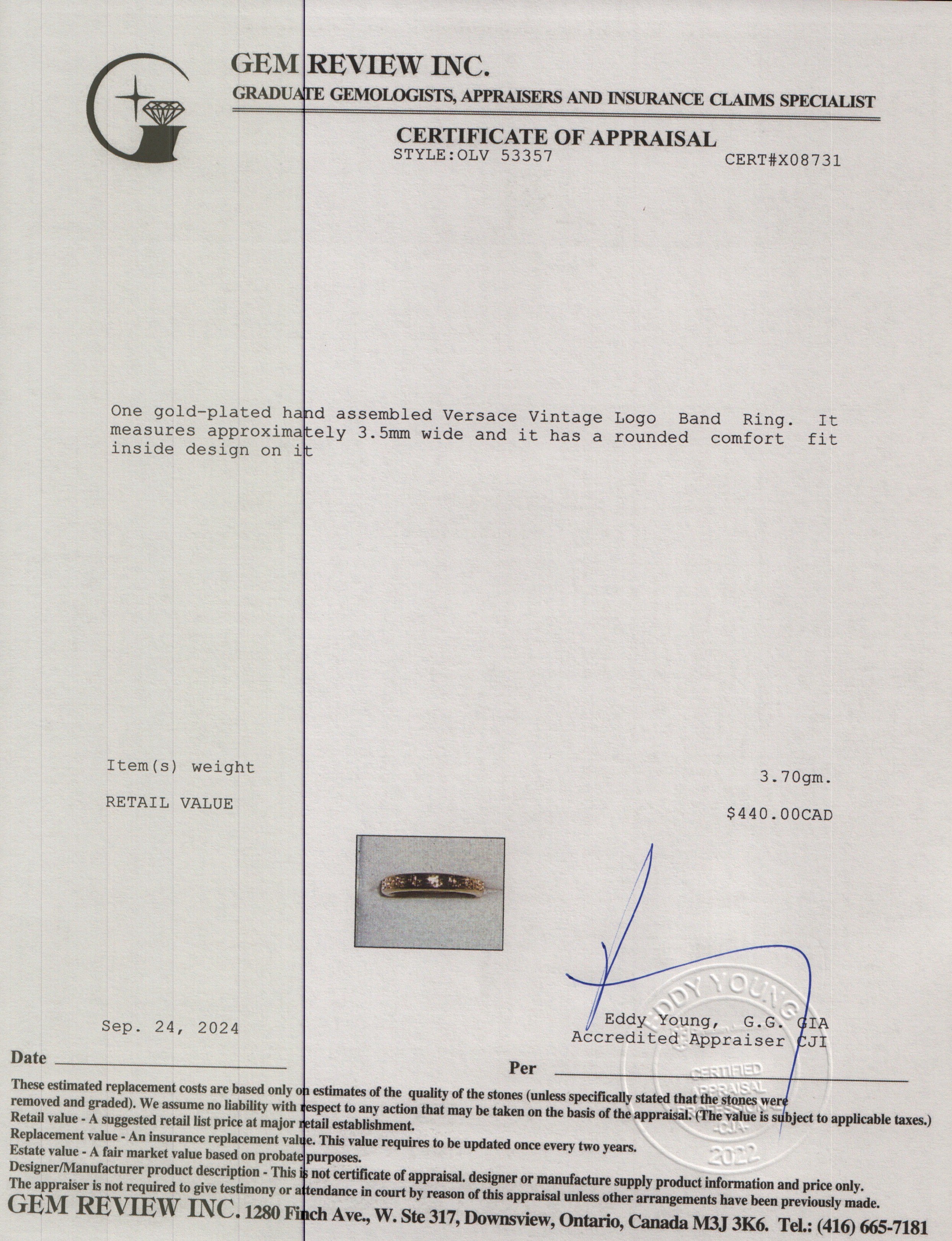 Vintage Gold-Plated Logo Band Ring, Size 4.5