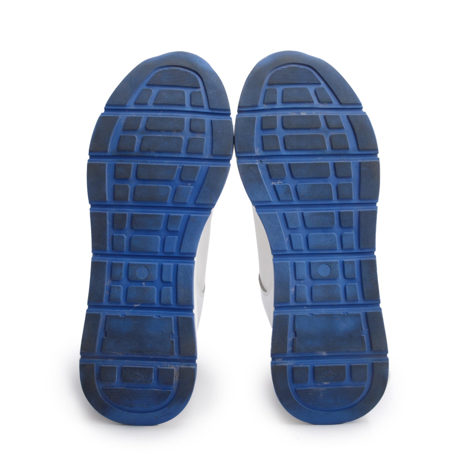 White/Blue Leather Greca Sneakers, Size 42 w/ Box