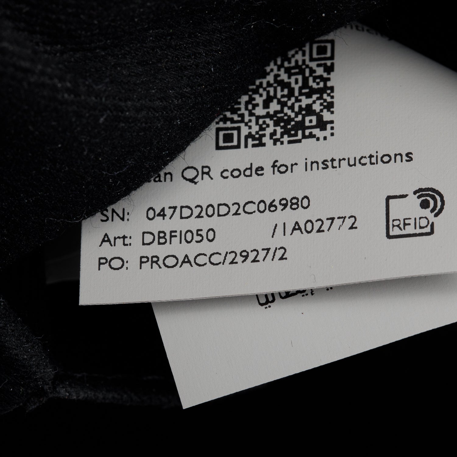 Condition: Good; moderate discoloration at exterior leather and strap; minor peeling at exterior leather and creasing at strap.