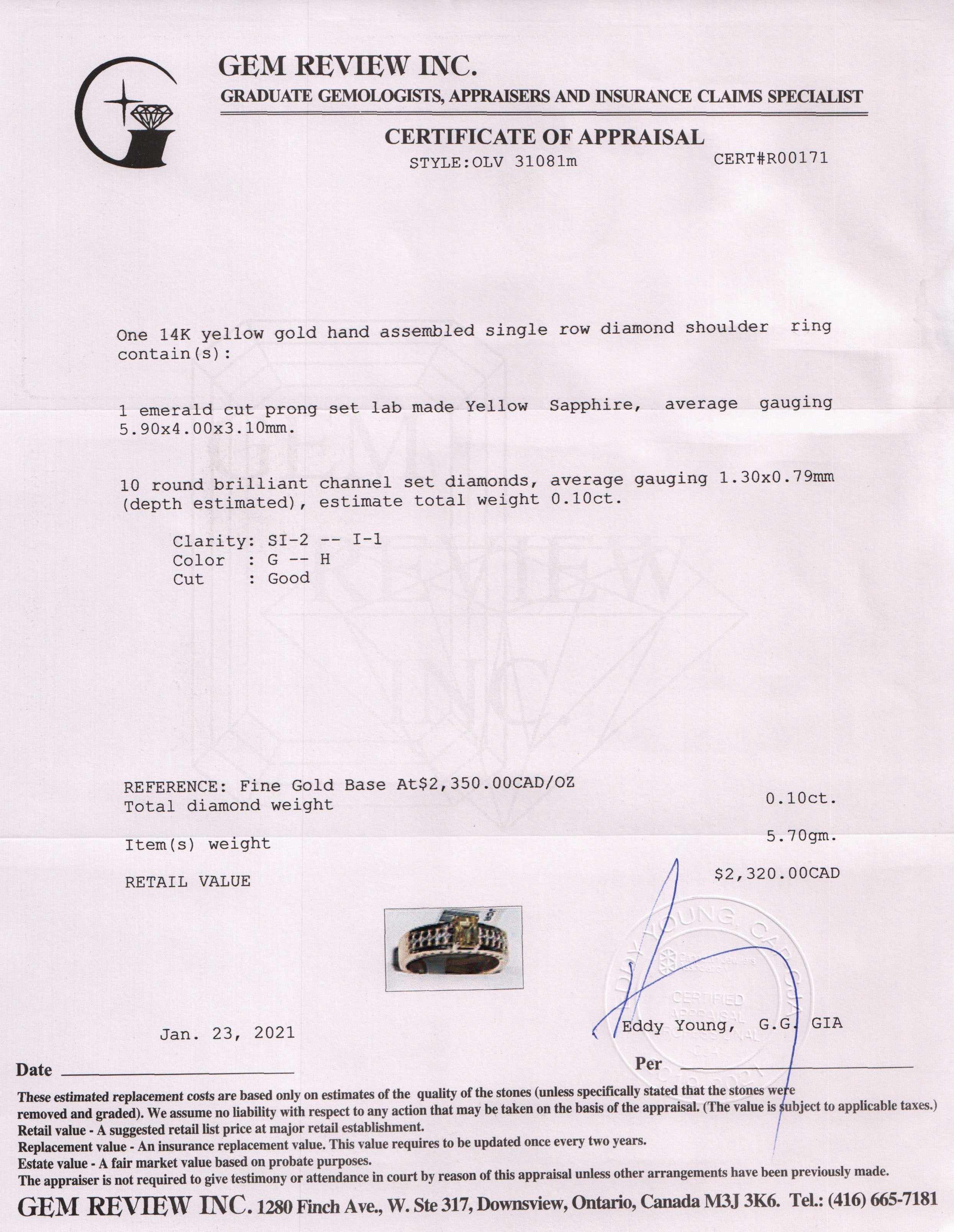 Included Items: Gem Review Appraisal
