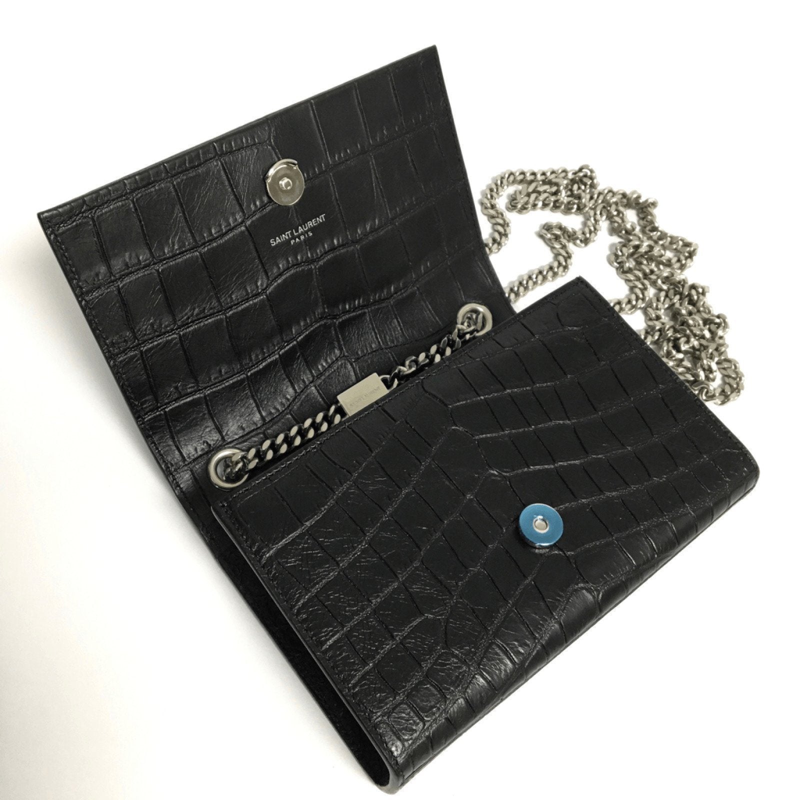 YSL Black Croc Embossed Monogram Kate Tassel Bag