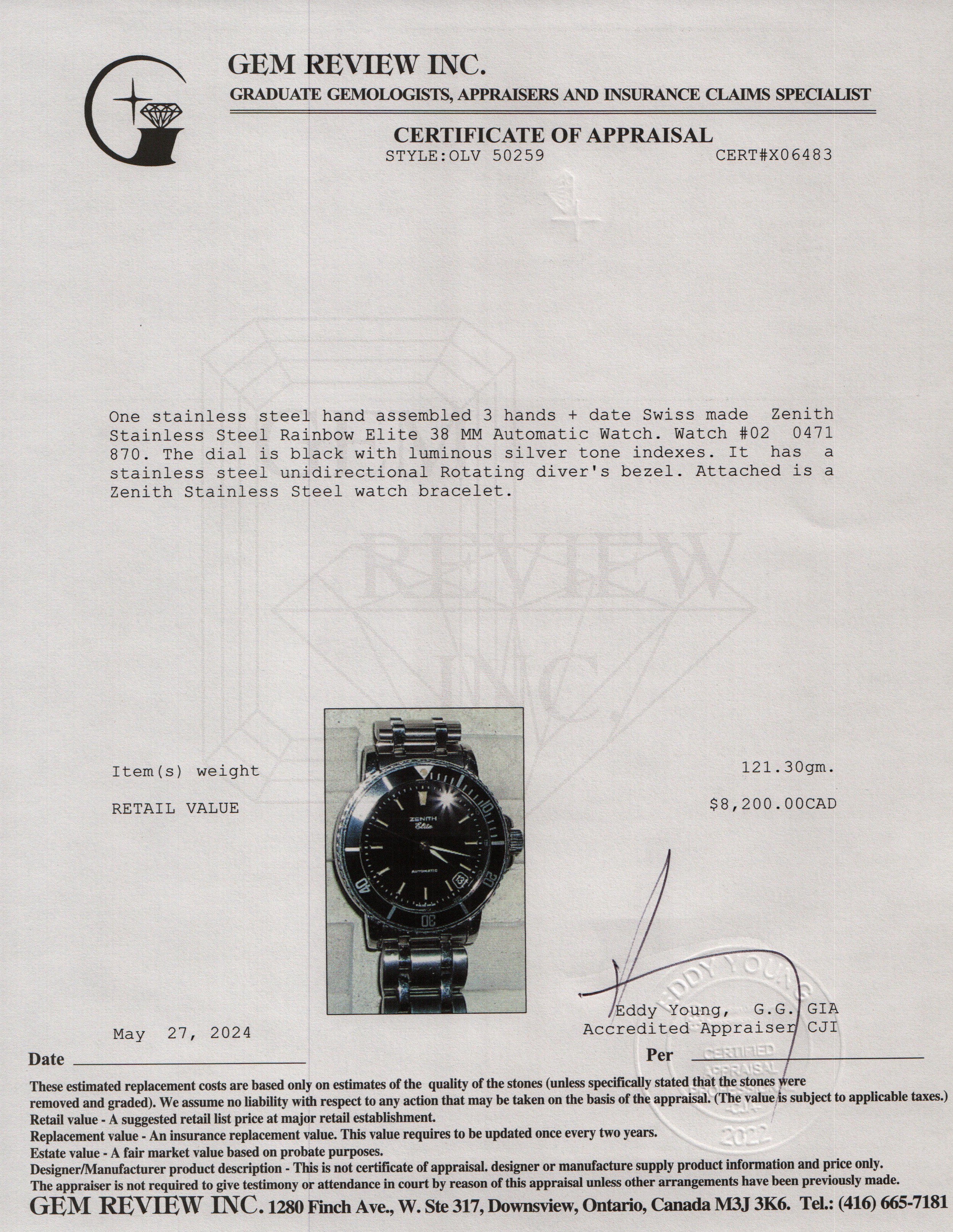 Stainless Steel Rainbow Elite 38 MM Automatic Watch w/ Box & Papers